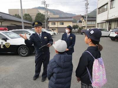 3・4年生2名が、社会科見学で新見警察署と新見消防署へ行きました。警察署では、白バイやパトカーに乗せていただいたり、たくさんの質問に答えてくださったりしました。また消防署では、救急車や消防車に乗せていただいたり、放水訓練もさせてくださったりしました。疑問に思ったことを、実際に見たり聞いたりするかなで解決することができ、とても勉強になりました。新見警察署と新見消防署のみなさん、ありがとうございました。