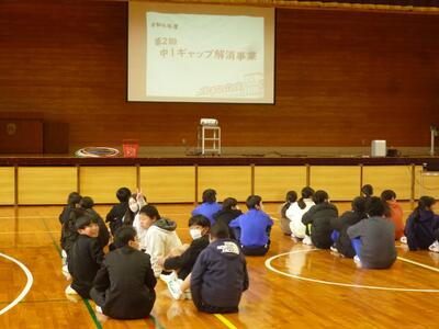 2月6日(木)に、思誠小学校体育館へ新見第一中学校区の小学校6年生全員が集まり、第2回中一ギャップ解消事業が行われました。この事業は、6年生が少しでも中学校のことについて知ったり、友達を作ったりすることにより安心して中学校へ進学できるようにすることを目的に行ったものです。この日は第2回目で、レクリエーション活動を行い交流を深めました。グループでの自己紹介や長縄跳び、「猛獣がりへ行こうよ」などのゲームを通して楽しく活動ができました。4月からの中学校生活が楽しみです。