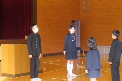 13日間の冬休みが終わり、7日(火)から3学期が始まりました。全校児童12名全員が元気よく登校し、始業式に参加しました。校長先生から今年の干支の話や3学期にがんばってほしいことについて話がありました。最後は校歌を歌って終了しました。