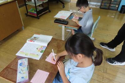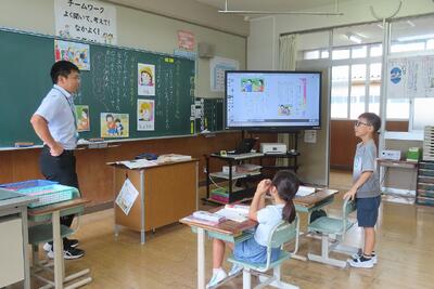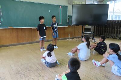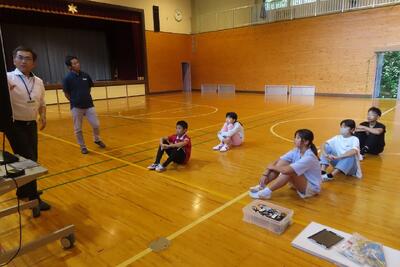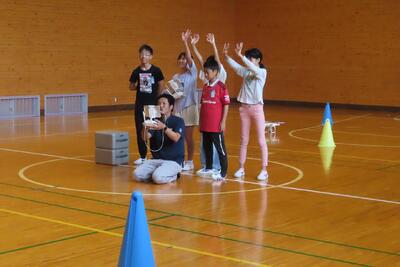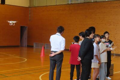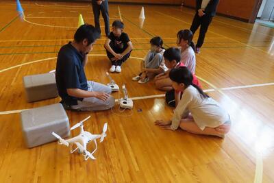 5・6年生がプログラミング学習としてドローンを使っての学習をしました。外部講師として教育委員会の先生と山佐の方に来ていただき、いろいろと教えていただきました。ドローンの使い方やきまり、生活での活用場面などをみんなで考えました。次に山佐の方が持参されたドローンを操作しました。子ども達はコントローラーを上手に使って飛ばすことができました。後半は2つのグループに分かれて自分たちが動かしたい動きを考え、その動きができるようにプログラミングをしていきました。自分たちが考えたとおりに動いた時には、とても嬉しそうでした。この学習はあと2回行う予定です。