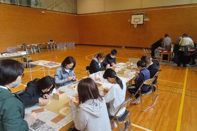 地震から火災が発生するという想定で避難訓練を行いました。新見市消防本部から2名の方に来ていただき、いろいろとご指導いただきました。地震時の避難の仕方、火災発生時の避難の仕方を改めて確認しました。後半は火災発生時に出る煙からどのように避難すればよいのかを実際に体験する煙中体験を行いました。体験を通して、低い姿勢で、ハンカチで口を押える、壁に手を当てながら避難するなど大切なことをたくさん学びました。