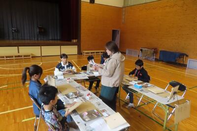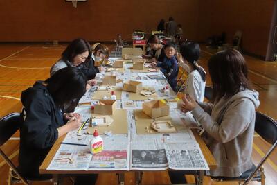 PTA主催による親子ふれあい活動が行われました。親子のふれあいを目的に毎年行っており、今年は木育を推進されておられる「木の葉art」の皆さんを講師にお招きし、5種類の木工細工にチャレンジしました。ヒノキの時計、フォトフレーム、プランター、万年カレンダー、アクセサリーの中で希望する物に取り組み、一人一人思い出に残る作品を作ることができました。また、木を題材にしたお話の読み聞かせをしてくださり、とても有意義な時間になりました。