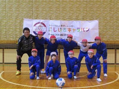 にじいろキャラバン 投稿: HP管理者 (12/11) カテゴリー: 授業の様子 ファジアーノ岡山サッカークラブが「にじいろキャラバン」を行いました。クラブから1名の講師の先生が来られ、全校児童9名参加のもと、いろいろな動きやミニサッカーを体験しました。いろいろな動きでは、グループで考える内容があり、みんなで協力することの大切さを学びました。後半はミニサッカーでゲームを楽しみ、最後は子ども達対先生チームで大変盛り上がりました。 Tweet -