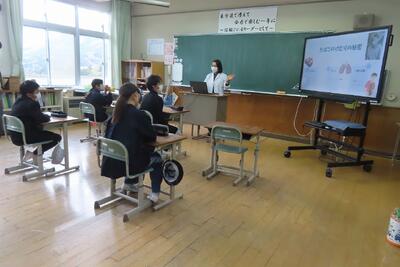 喫煙防止教室 投稿: HP管理者 (11:04) カテゴリー: 今日の出来事 学校薬剤師の長谷川先生をお招きし、5・6年生が喫煙防止教室を行いました。先生は、喫煙による体への害や受動喫煙による周りの人への影響などを分かりやすく教えてくださいました。また、たばこのパッケージを考える活動を通して、喫煙による健康への害をはじめ、自分と周りのの健康を守る大切さも学びました。 Tweet -