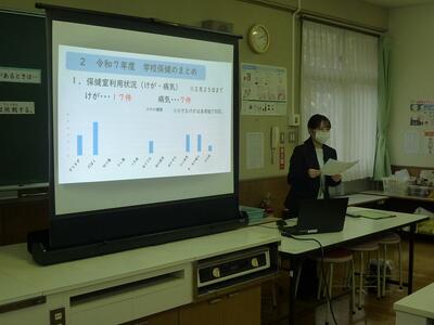 学校保健員会 投稿: HP管理者 (16:08) 授業参観の後、親子で学校保健員会を行いました。養護教諭から保健室利用等の説明や親子での生活リズムについての反省と、来年度の目標を決めました。最後に生活リズムカードの取組がよかった子どもの表彰を行いました。 Tweet -